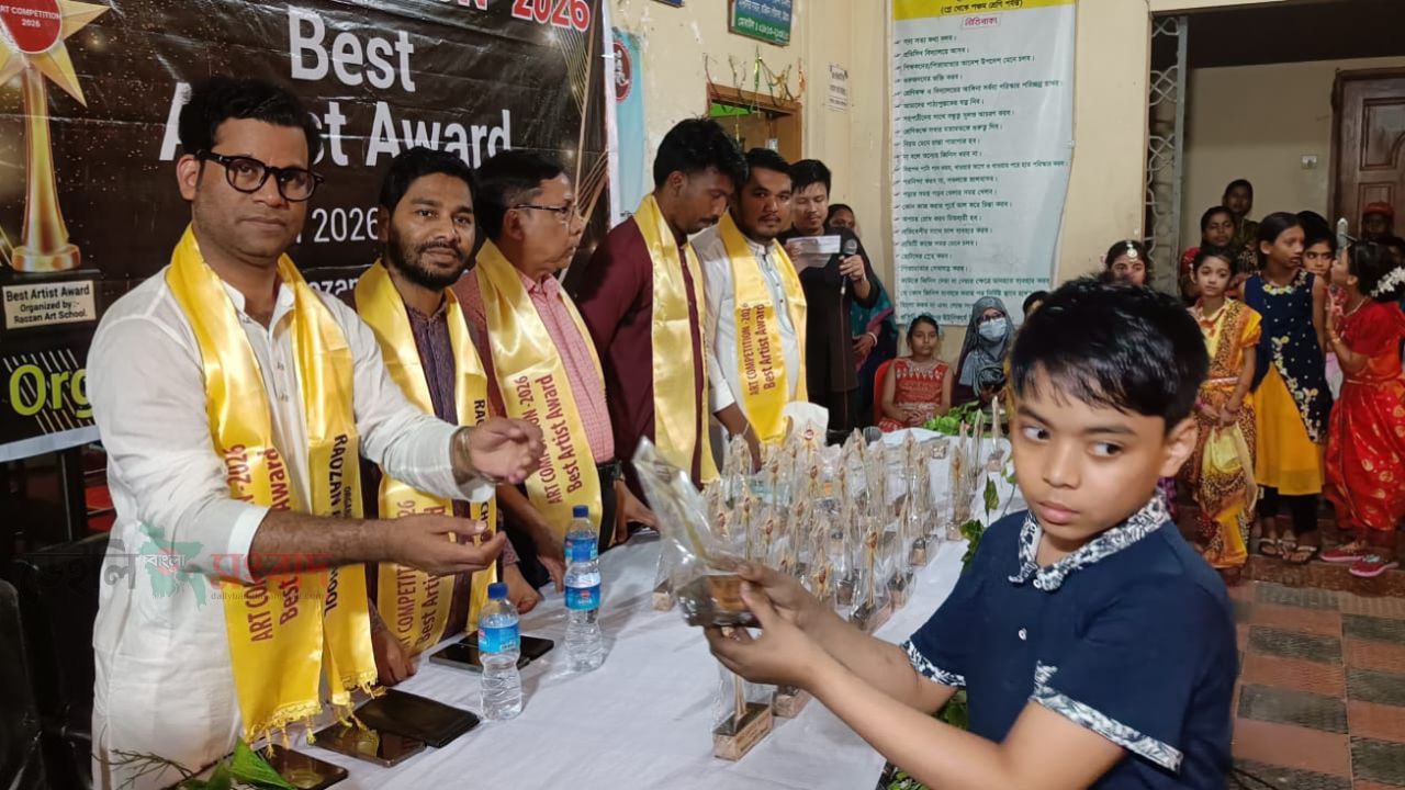 মিলন বৈদ্য শুভ, রাউজান (চট্টগ্রাম):চট্টগ্রামের রাউজানে রাউজান আর্ট স্কুলের উদ্যোগে ২০২৬ সালের বার্ষিক চিত্রাঙ্কন প্রতিযোগিতা ও পুরস্কার বিতরণ অনুষ্ঠান উৎসবমুখর পরিবেশে অনুষ্ঠিত হয়েছে।