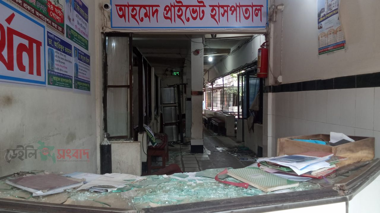 সঞ্জয় শীল, নবীনগর (ব্রাহ্মণবাড়িয়া) প্রতিনিধি:ব্রাহ্মণবাড়িয়ার নবীনগর সদরের “আহমেদ প্রাইভেট হাসপাতাল লিমিটেড” নামে একটি বেসরকারি হাসপাতালে প্রসূতির মৃত্যুর ঘটনায় ভুল চিকিৎসার অভিযোগ এনে ভাঙ্গচুর করে। এতে ভয় পেয়ে পালিয়ে যায় হাসপাতালে থাকা মালিক, চিকিৎসক ও কর্মচারীরাসহ রোগীরা। পরে খবর পেয়ে নবীনগর থানা পুলিশ পরিস্থিতি নিয়ন্ত্রনে আনলেও সরেজমিনে গিয়ে দেখা যায় সুনশান নিরবতা। হাসপাতালের ভেতরে ভাঙ্গচুরা জিনিসপত্র পড়ে আছে।