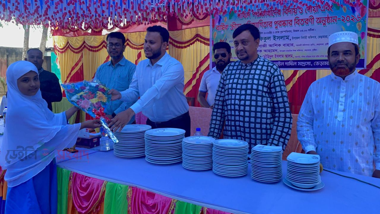 ভেড়ামারায় দাখিল পরীক্ষার্থীদের বিদায় ও বার্ষিক ক্রীড়া পুরস্কার বিতরণী অনুষ্ঠান।