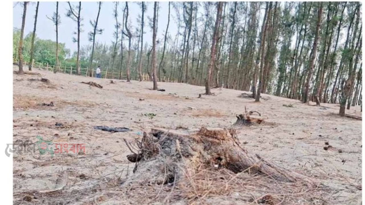 সরেজমিন দেখা যায়, নাজিরারটেক সংলগ্ন বিস্তীর্ণ এলাকায় অবাধে ঝাউগাছ কেটে ফেলা হয়েছে। বালিয়াড়ি ঘিরে তৈরি করা হয়েছে মৎস্য ঘের। বড় বড় জায়গা দখল করে প্লট আকারে ভাগ করাও হয়েছে এবং সেখানে রয়েছে পাহারাদার আর লাগানো হয়েছে সিসিটিভি ক্যামেরা।