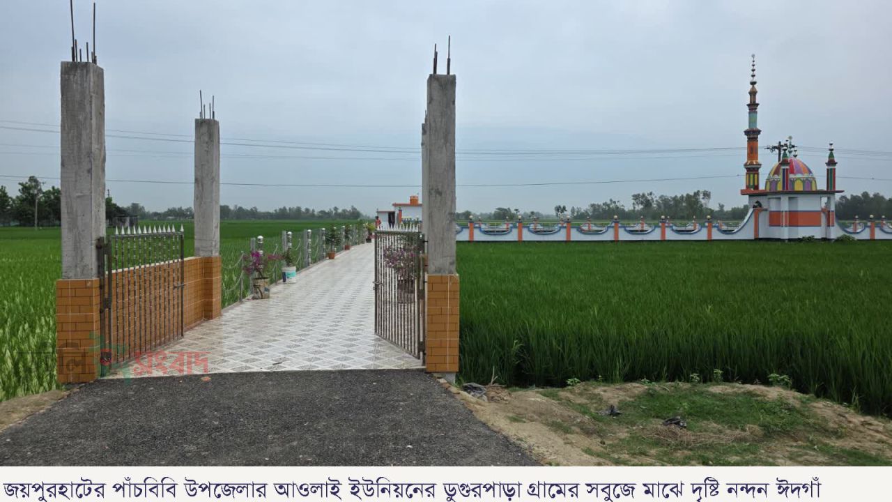 মোঃ বাবুল হোসেন, পাঁচবিবি (জয়পুরহাট) উপজেলা সংবাদদাতাঃ জয়পুরহাটের পাঁচবিবি উপজেলার আওলাই ইউনিয়নের ডুগুরপাড়া গ্রামে বিস্তীর্ণ সবুজ ধানক্ষেতের মাঝে গড়ে উঠেছে দৃষ্টিনন্দন একটি ঈদগাঁ মাঠ। নান্দনিক অবকাঠামো ও সৌন্দর্যবর্ধন কাজের কারণে ঈদগাঁটি ইতো মধ্যেই স্থানীয়দের পাশাপাশি পথচারীদেরও নজর কেড়েছে। অনেকেই এখানে এসে মুঠোফোনে ছবি ধারণ করছেন।