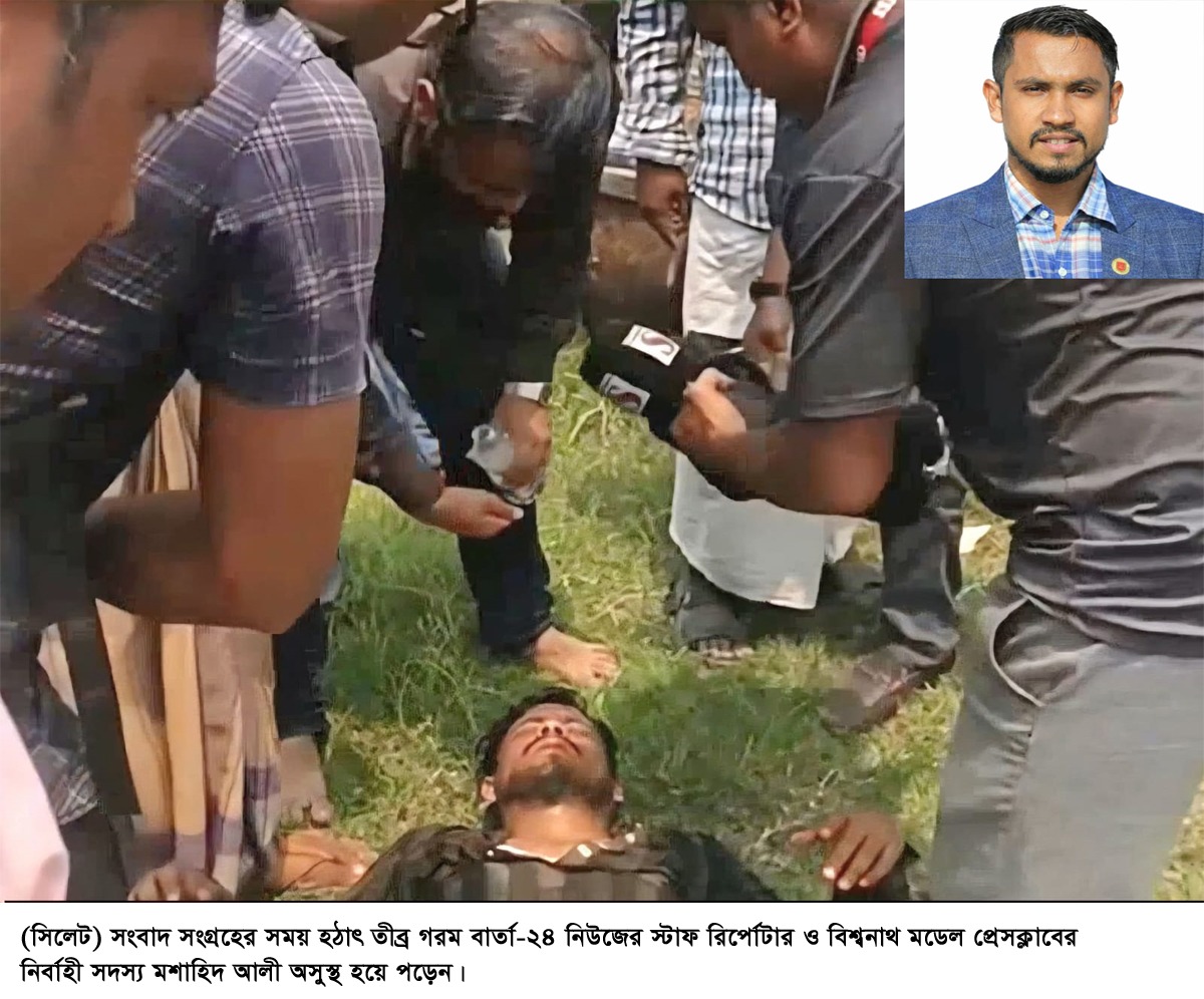 বিশ্বনাথ (সিলেট) প্রতিনিধি আফজাল মিয়া। সিলেটে রাষ্ট্রীয় সফরে গণপ্রজাতন্ত্রী বাংলাদেশ সরকারের বাণিজ্য, শিল্প, বস্ত্র ও পাট মন্ত্রী ও সিলেট-১ আসনের খন্দকার আব্দুল মুক্তাদির ও পানিসম্পদ প্রতিমন্ত্রী ফরহাদ হোসেন আজাদ সিলেটের ঐতিয্যবাহী বাসিয়া নদীর সংযোগস্থল মাসুকগঞ্জ বাজারে পরিদর্শনে আসলে তীব্র গরম ও উপস্থিত মানুষের সমাগমে হঠাৎ করে বার্তা-২৪ নিউজের স্টাফ রির্পোটার ও বিশ্বনাথ মডেল প্রেসক্লাবের নির্বাহী সদস্য মশাহিদ আলী অসুস্থ হয়ে পড়লে জেলা বিএনপির সাধারণ সম্পাদক ও সিলেট-৬ আসনের সংসদ সদস্য এডভোকেট এমরান আহমদ চৌধুরী তার নিজ গাড়িতে তুলে প্রাথমিক সেবা দেওয়ার চেষ্ঠা করেন| তাৎক্ষনিক ঘটনাস্থলে সংসদ সদস্য এমরান আহমদ চৌধুরীর মানবিকতার প্রশংসা করেন সাংবাদিক সমাজ| বর্তমানে সাংবাদিক মশাহিদ আলী সুস্থ রয়েছে|