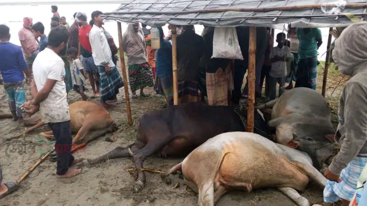 স্থানীয় সূত্রে জানা যায়, বৃষ্টির আগমুহূর্তে আকস্মিক বজ্রপাতের ঘটনা ঘটে। এ সময় শাহীন ভান্ডারীর মালিকানাধীন পাঁচটি গরুর মধ্যে চারটি ঘটনাস্থলেই মা/রা যায়। একটি গরু জীবিত রয়েছে।